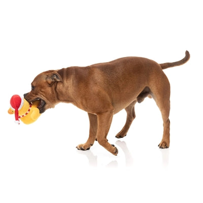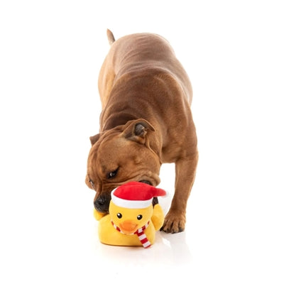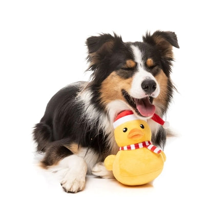 De Fuzzyard Festive Waddles Eend is een hondenspeeltje voor de knusse winterdagen. Met zijn vrolijke kerstmuts en rood-wit gestreepte sjaal ziet deze zachte pluche eend er niet alleen feestelijk uit, maar is hij ook heerlijk om mee te knuffelen en te spelen. Een perfect cadeautje voor je hond tijdens de feestdagen!