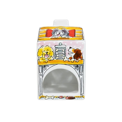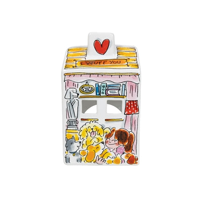 Het Blond Amsterdam Lichthuisje Hond 8X8X14 cm is een schattig felgekleurd theelichthuisje met rondom hondenprint dat met een waxinelichtje zorgt voor een sfeervol licht. Het huisje is gemaakt van aardewerk en is 14 centimeter hoog. Door de raampjes wordt de kamer sfeervol verlicht. De schoorsteen en hondenprint in Blond Amsterdam-stijl, maken dit lichthuisje de perfecte toevoeging in het huis van elke hondenliefhebber!