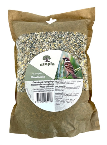 Vind jij het leuk om de mussen in jouw tuin te zien, of gun jij deze dieren wat extra's? Met dit luxe strooivoer van Utopia kunnen de mussen in jouw tuin lekker genieten van een aanvulling op hun normale dieet. Dit voer bestaat uit diverse granen en zaden en is een volledig, uitgebalanceerd strooivoer. Zo blijven de mussen in jouw tuin gezond en weldoorvoed gedurende het hele jaar! Je kunt het mengsel gemakkelijk uitstrooien over jouw tuin, of aanbieden in een voederschaal als je meer gericht wilt voeren. Zo kun je ongestoord genieten van alle wilde mussen in jouw tuin of op je balkon! De voeding is 100% natuurlijk, zonder toegevoegde suikers, smaakversterkers, conserveringsmiddelen en kleurstoffen.